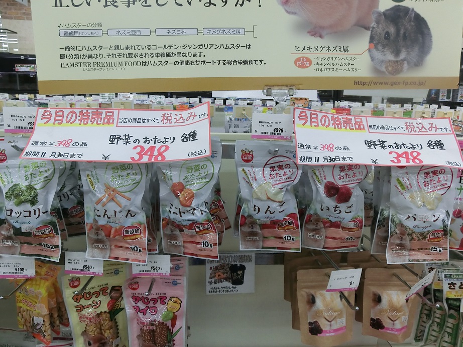 小動物用品は毎年カワイイものが増えていて、去年のお気に入りは画像の右上にある桃ポーチだったのですが、今年は敷き布団型のポーチもあって見てるだけでほっこり。