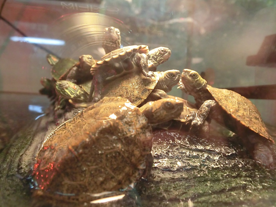 ゼニガメ、ミドリガメ、イシガメがいますョ