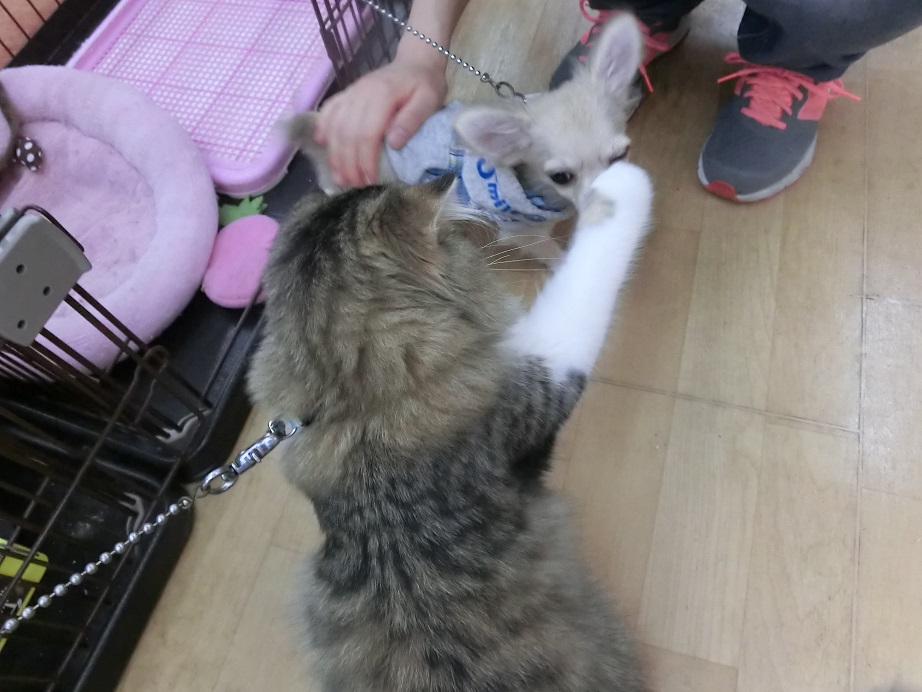 お隣のスコにゃんは見守ります。