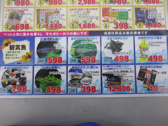 人気種やヒーターもお安くなります!