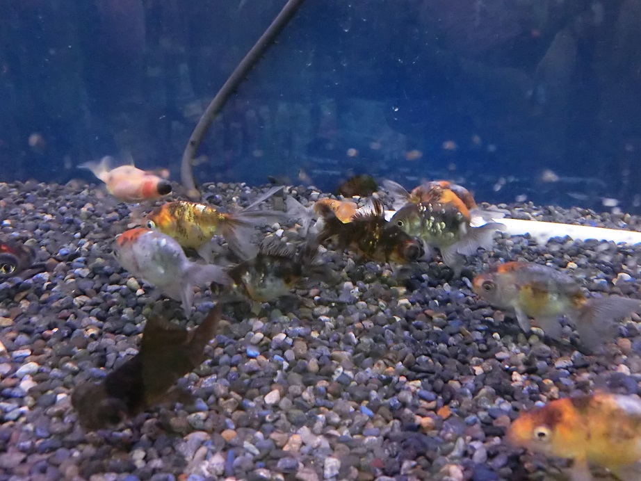 今回仕入れてきた金魚ではないのですが、お店にいる茶金と青文魚がスゴイ照りと鮮やかさなので、名前は地味ですが一度見て頂きたい金魚です。