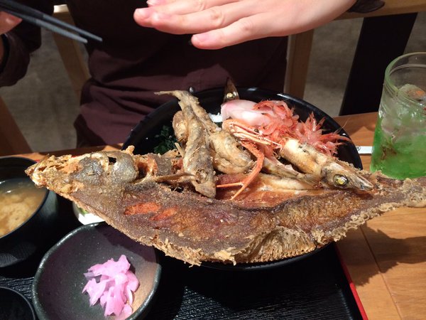 沼津の漁港沿いで食べた「深海魚丼」のこと。