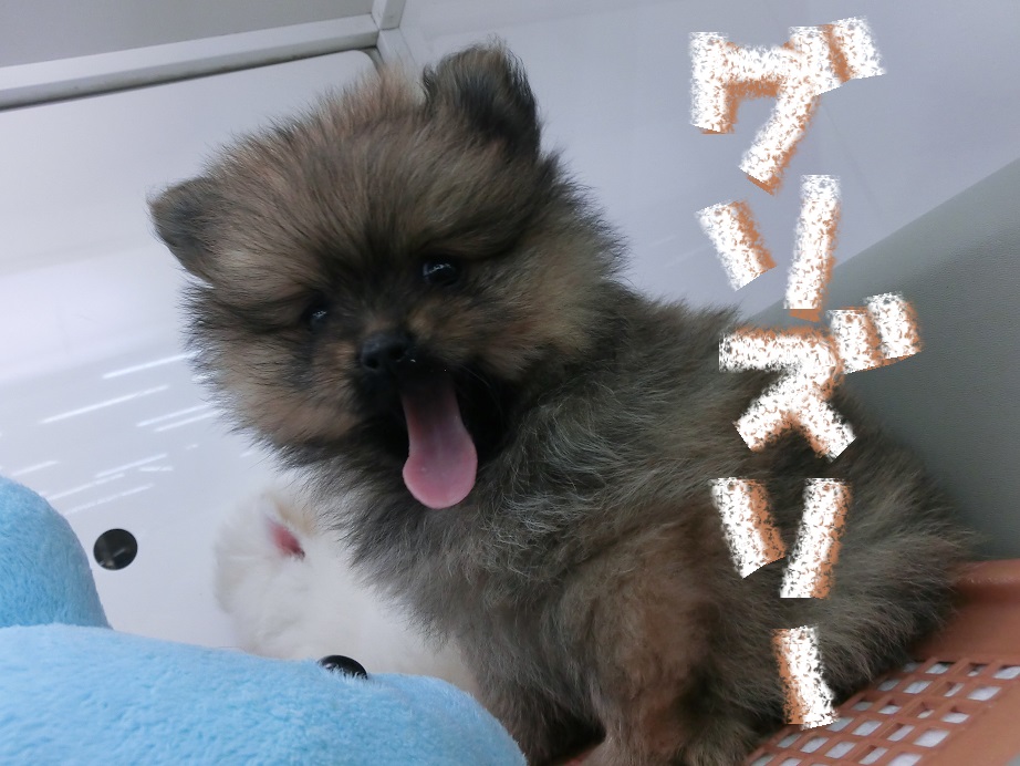 今日は二和店生まれのポメ兄妹も、店頭デビューの練習をしていました。