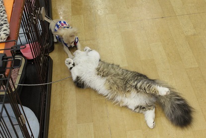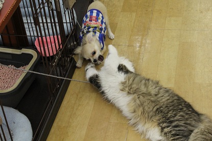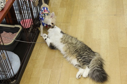 「にゃんこ」みたいな「わんこ」の戯れる『図』。