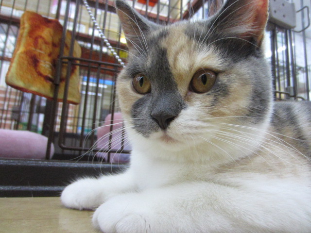 淡い三毛猫。