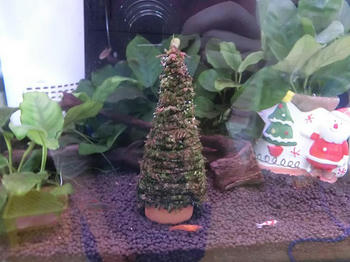 この水槽もクリスマスっぽいレイアウトにしたかったのですが