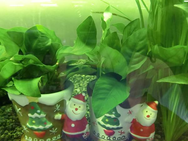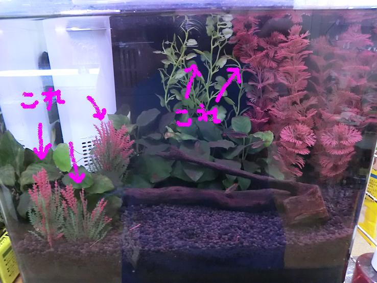 実はこちら、本物の水草と人工水草を半々にしているのです。