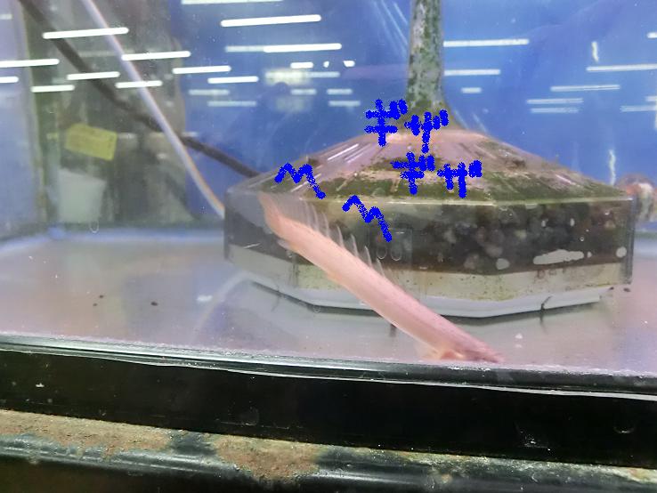 このやじるしの先が人工水草です。