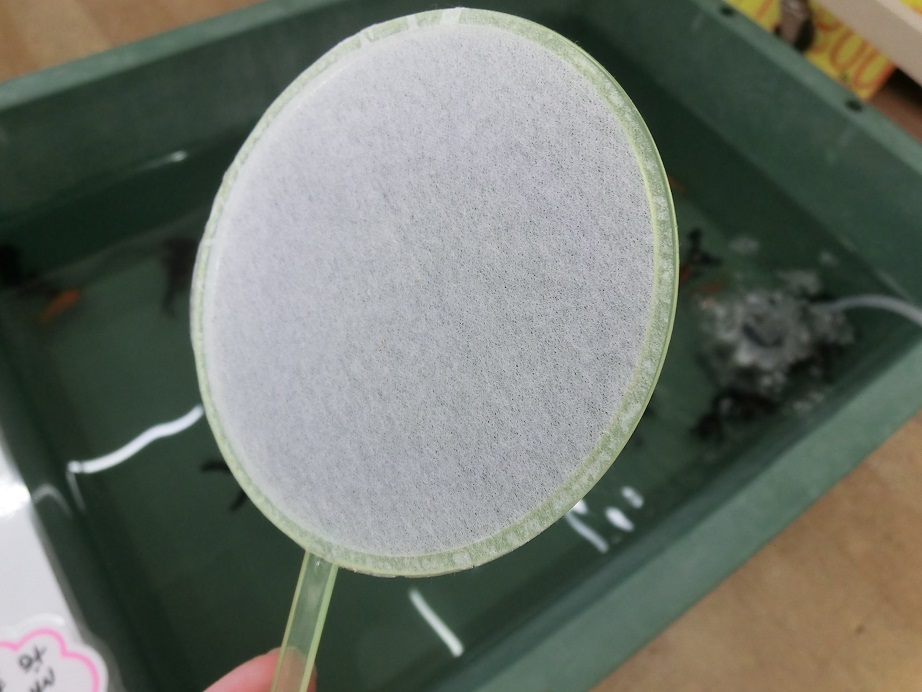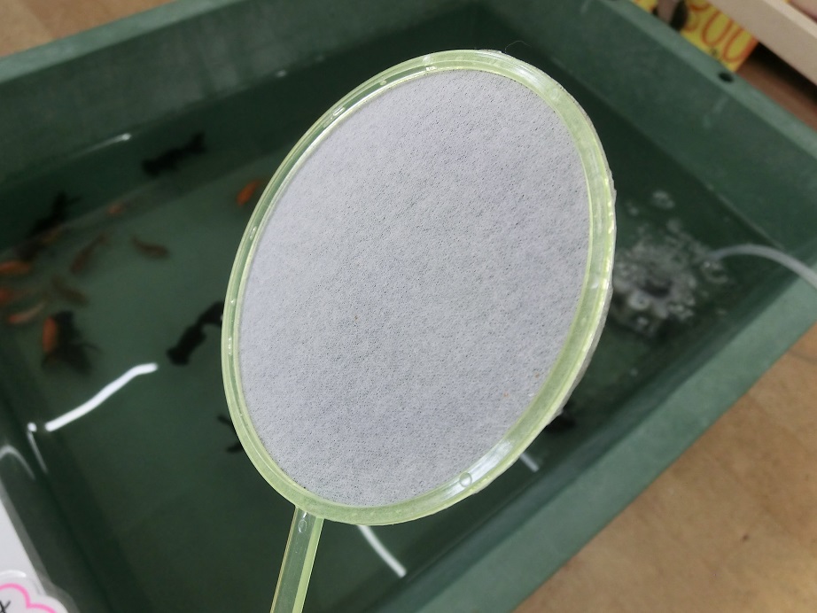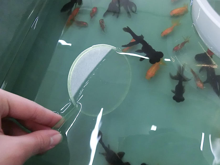 ポイを平行に、ゆっくりと金魚のしたにもっていくのですが