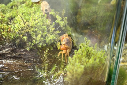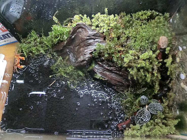飼うときは陸地を多めに、水は1cmほどの深さでオッケーです。