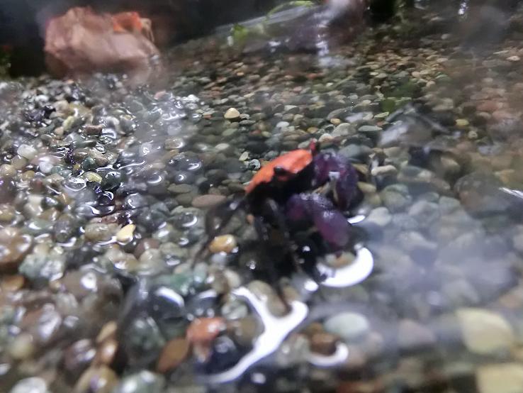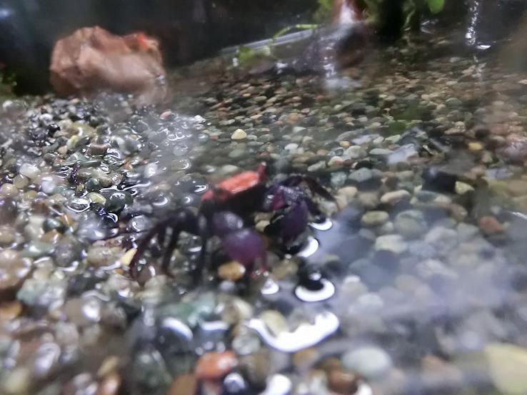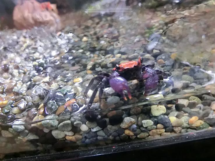 そうです、ツメが紫、頭はオレンジと、ずいぶんファンキーな色のカニさんなのです。