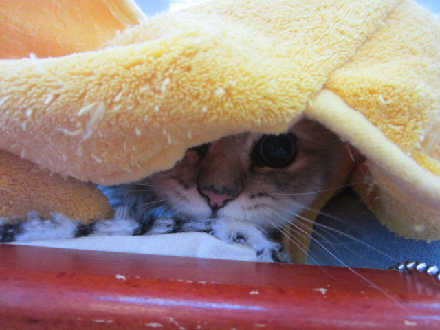 ベッドの下に潜っていたので
