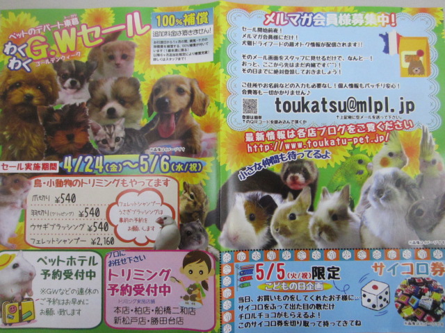東葛ペット船橋二和店スタッフのブログです(・・。)ゞ