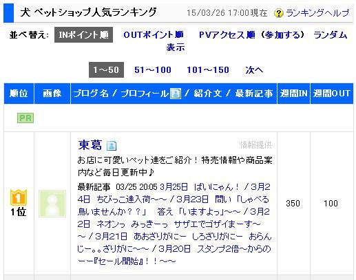 とうとうブログランキングで堂々の1位!!!