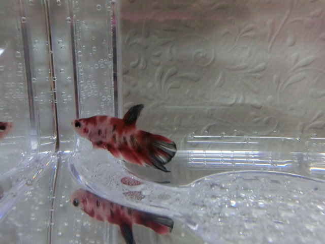 赤と白、そして黒がバランスよく入った個体の2匹の入荷です