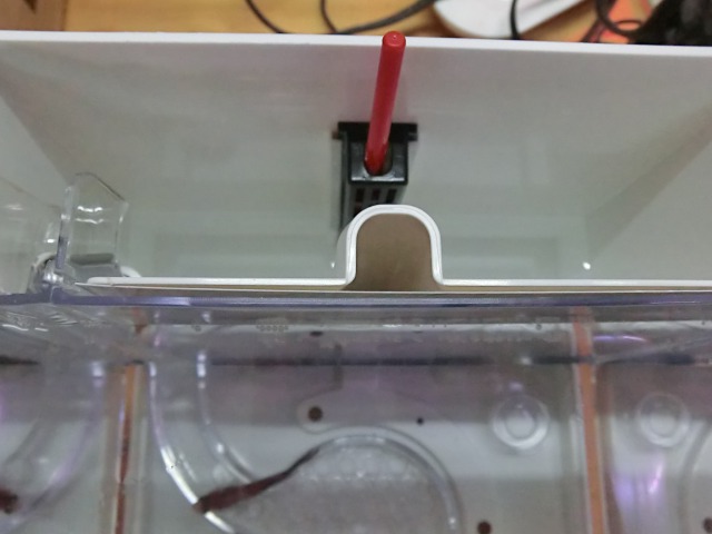 赤い棒が水槽のふたの上から出てきたら