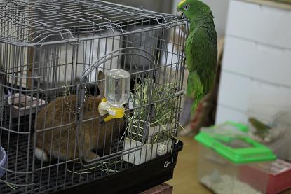何気に朝のお世話の際にカゴの扉を開放していましたら。。